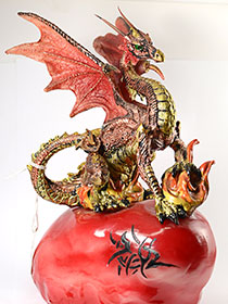 Green Dragon Wishing Box is a great dragon themed cold cast resin wishing box. If you love gold leaf, pentagrams and dragons, this wishing box is for you. The beautiful box is an ornate work of art adorned with a raised interlaced pentagrams with candles in the center of the sides that make up the four walls of the box. Each side of the box has gold leaf work done on the raised design work to make it really pop and stand out against the vibrant green coloring of the wishing box itself. The entire top of the box is removable to reveal the inner box and a scroll which is included, that is to be used to write down the wishers desires, and be placed into the box until their wish comes true.