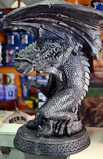 It's a great dragon themed cold cast resin wishing box. If you love gold leaf, pentagrams and dragons, this wishing box is for you. The entire top of the box is removable to reveal the inner box and a scroll which is included, that is to be used to write down the wishers desires, and be placed into the box until their wish comes true